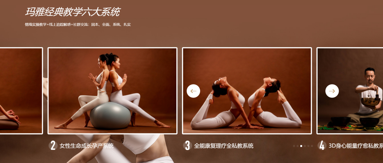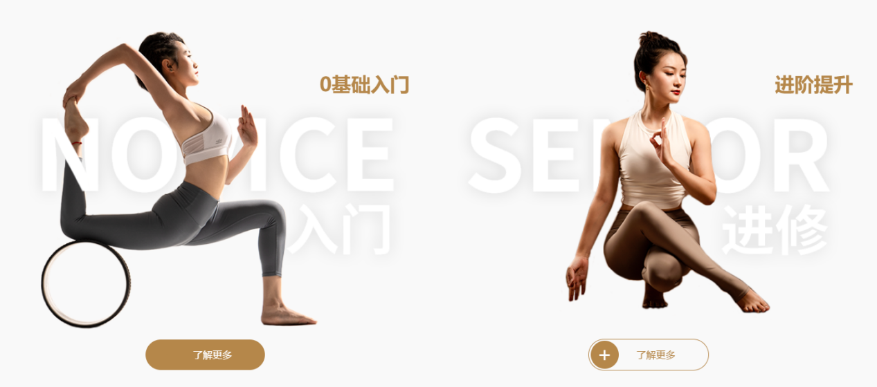 瑪雅瑜伽本次官網(wǎng)的受眾人群有很大一部分是想要學(xué)習(xí)瑜伽的學(xué)員,其中有0基礎(chǔ)的瑜伽學(xué)員,也有有一定基礎(chǔ)想要提升的學(xué)員,還有孕前孕后想要保持身材的學(xué)員等各種愛美的女士,于是我們在首頁重要位置規(guī)劃了這部分人群關(guān)注的欄目【0基礎(chǔ)入門】和【進(jìn)階提升】